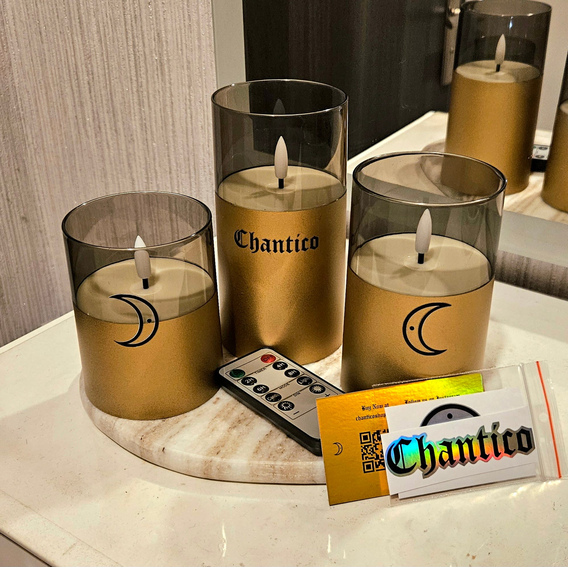 Chantico Świece Elektryczne z Pilotem - Czarno-Złote - 3 szt.
